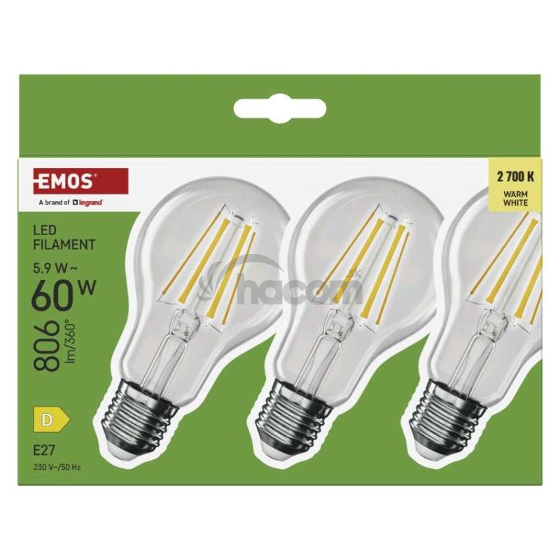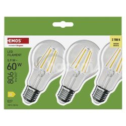 - LED žiarovka Filament A60 / E27 / 5,9 W (60 W) / 806 lm / Teplá biela 3ks ZF5D42.3