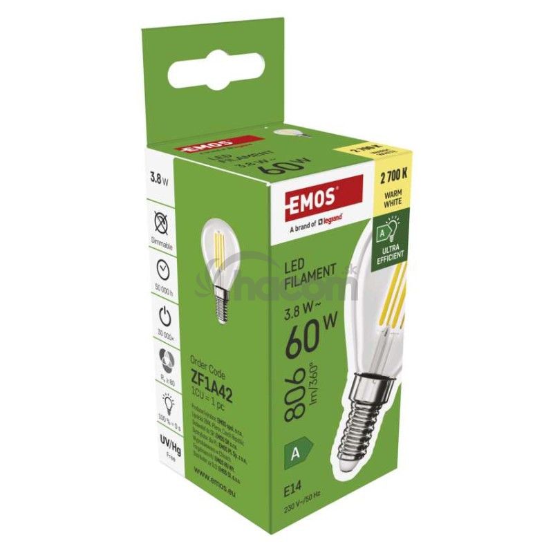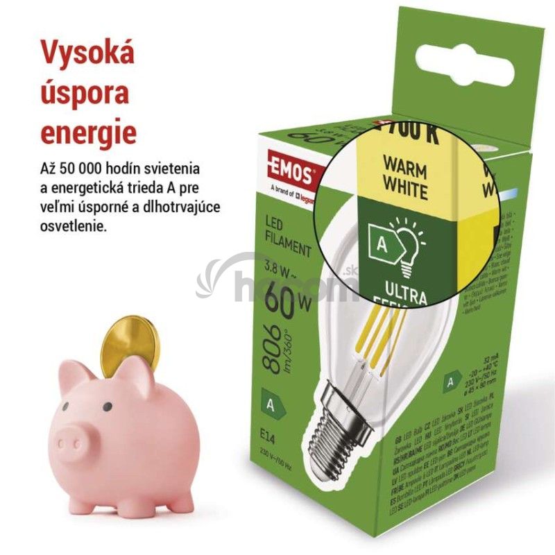 - LED žiarovka Filament Mini Globe A CLASS / E14 / 3,8 W (60 W) / 806 lm / teplá biela ZF1A42