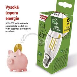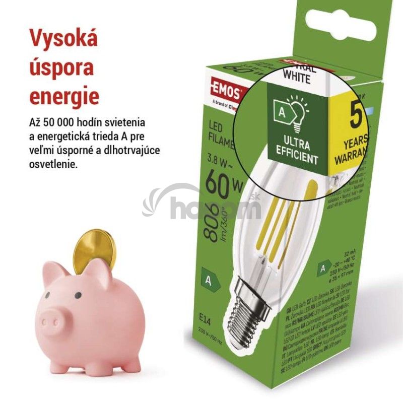 - LED žiarovka Filament sviečka A CLASS/ E14 / 3,8 W (60 W) / 806 lm / neutrálna biela ZF3A43