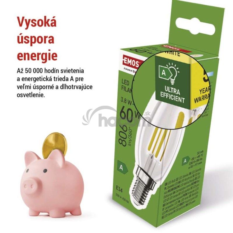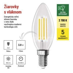 - LED žiarovka Filament sviečka A CLASS/ E14 / 3,8 W (60 W) / 806 lm / Teplá biela ZF3A42