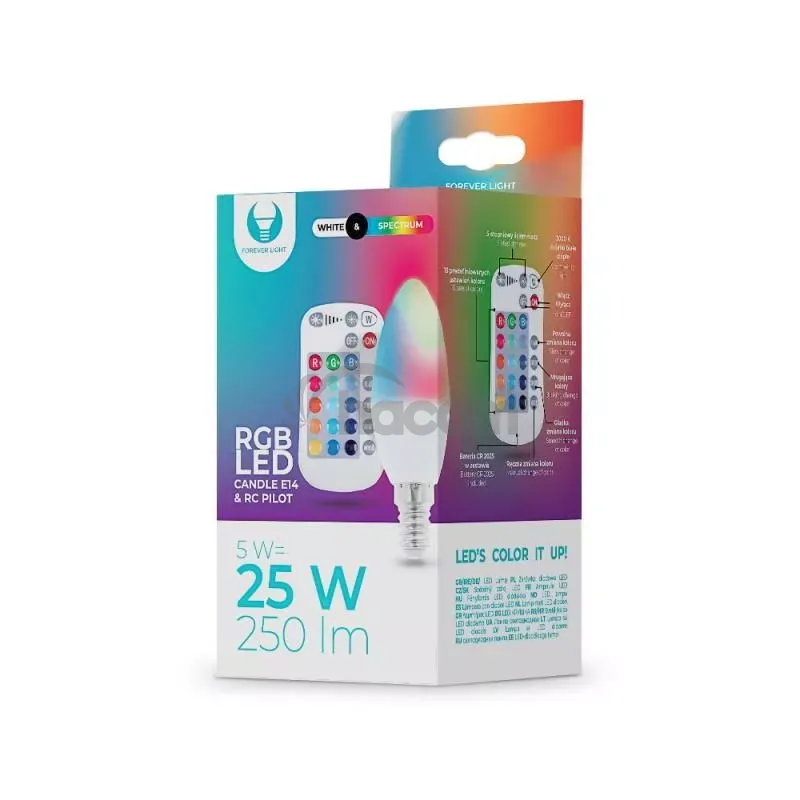 LED žiarovka Forever E14 C37 RGB 5W s diaľkovým ovládaním biela RTV003565