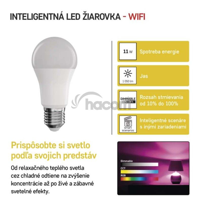 - LED žiarovka GoSmart A60 / E27 / 11 W (75 W) / 1 050 lm / RGB / stmievateľná / WiFi ZQW515R