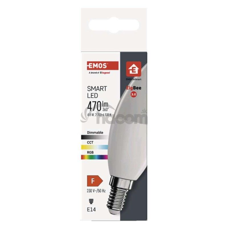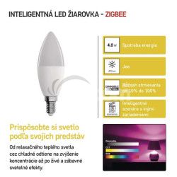 - LED žiarovka GoSmart sviečka / E14 / 4,8 W (40 W) / 470 lm / RGB / stmievateľná / Zigbee ZQZ322R