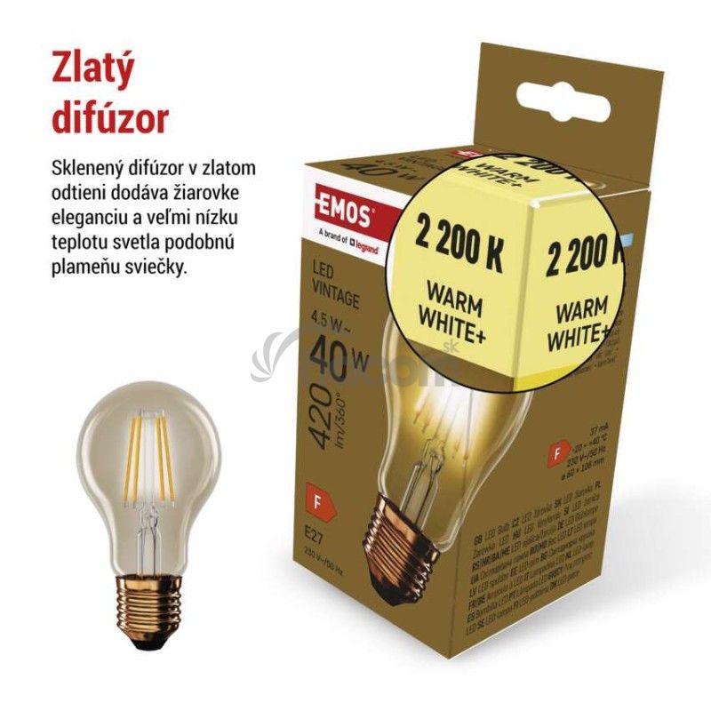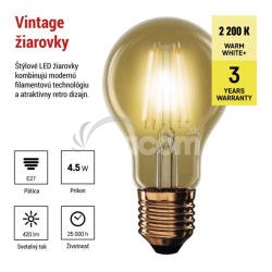 - LED žiarovka Vintage A60 / E27 / 4,5 W (40 W) / 420 lm / Teplá biela Z55032
