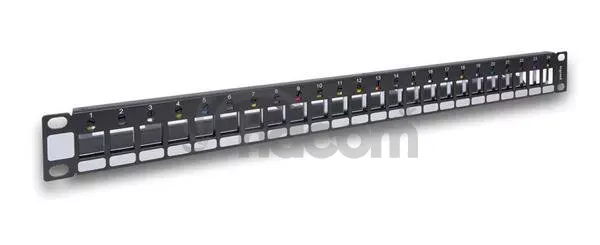 - Legrand Linkeo modulárny patch panel s kovovou vyväzovacou lištou na káble, 24xRJ45 STP/UTP, otočné kolieska so 6 farbam