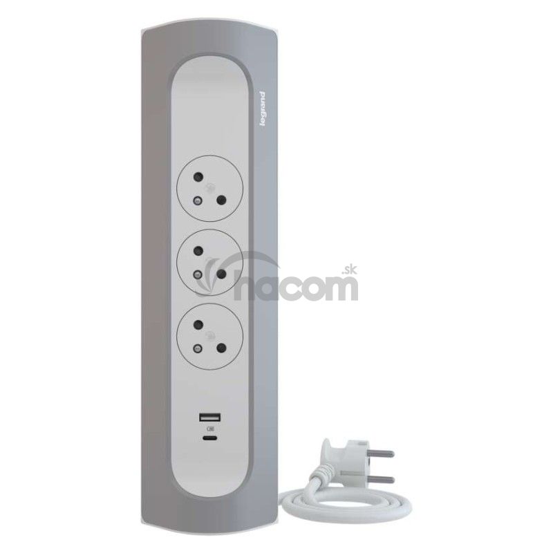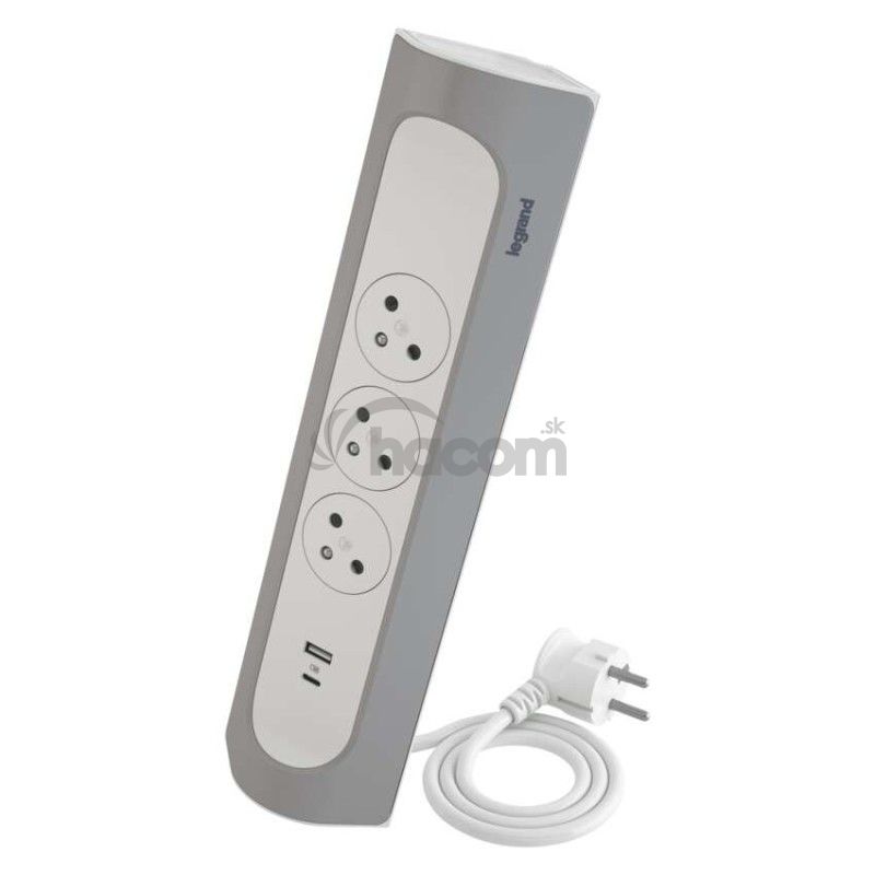 - Legrand predlžovací kábel 1 m / 3 zásuvky / s USB / hliník-biela / PVC / 1,5 mm2 L049406