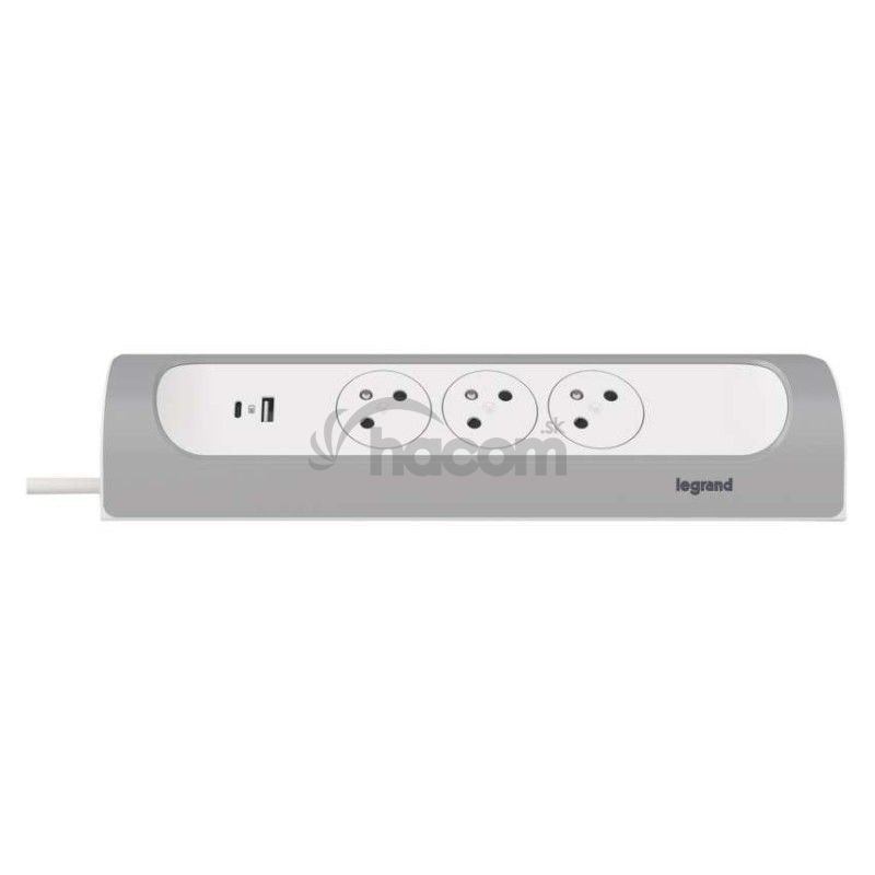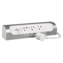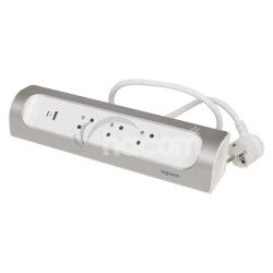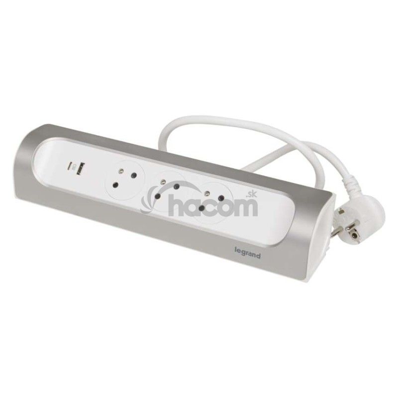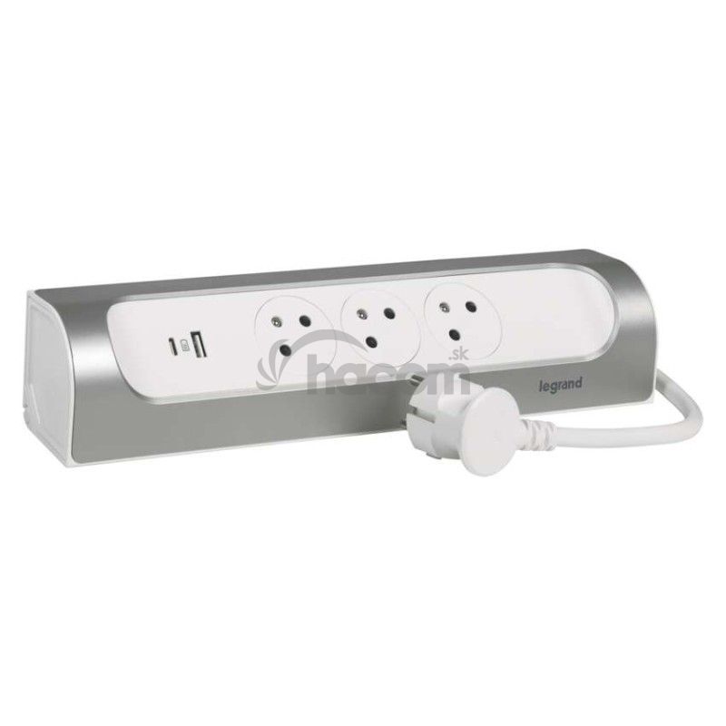 Legrand predlžovací kábel 1 m / 3 zásuvky / s USB / hliník-biela / PVC / 1,5 mm2 L049406