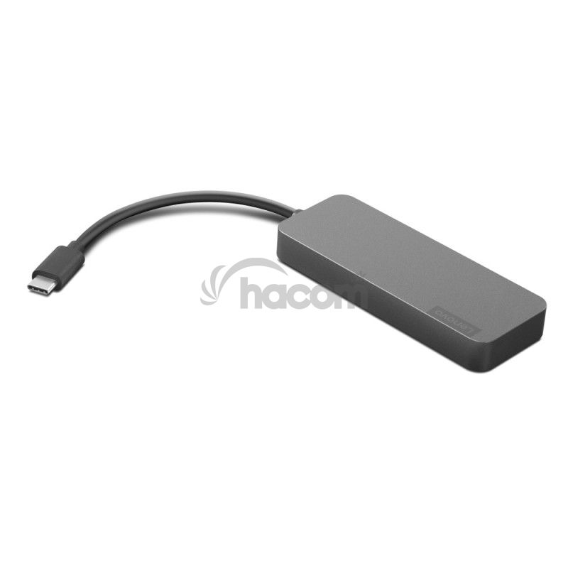 Keď si život žiada viac, Lenovo USB-C 1-to-4 Hub vám pomôže rozšíriť váš potenciál pridaním štyroch ďalších zariadení USB-A pomocou jediného rozbočovača USB-C. Úložisko, klávesnica, myši, optické mechaniky, čokoľvek potrebujete, môžete ho ľahko pripojiť k notebooku alebo počítaču s rozhraním USB-C. Rozbočovač je ultrakompaktný a váži iba 42 gramov, takže ho môžete mať vždy po ruke vo vrecku alebo taške. Poznámka: V závislosti od mnohých faktorov, ako je výpočtová kapacita hostiteľského a periférnych zariadení, atribúty súborov a ďalšie faktory súvisiace s konfiguráciou systému a prevádzkovým prostredím, bude skutočná rýchlosť prenosu dát pomalšia, než je inzerované. Napríklad na konektoroch USB 3.1 Gen 1 (USB 3.0) sa môže vyskytnúť rýchlosť 5 Gb/s, na konektoroch USB 3.1 Gen 2 pomalšia ako 10 Gb/sa na konektoroch USB 3.2 pomalšia ako 20 Gb/s.
