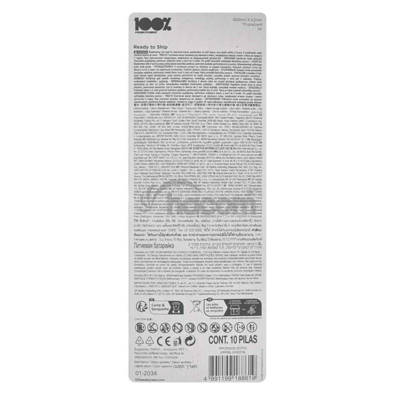 - Lítiová gombíková batéria GP PeakPower CR2032, 10 ks 10ks B1532GP