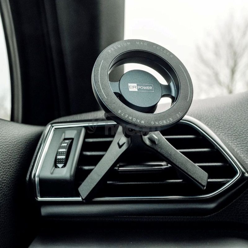 Vďaka integrovaným, silným, priemyselným magnetom k držiaku pevne priľne akýkoľvek magnetický povrch. Spoľahlivo udrží zariadenie kompatibilné s MagSafe, teda iPhone 12 a novšie.