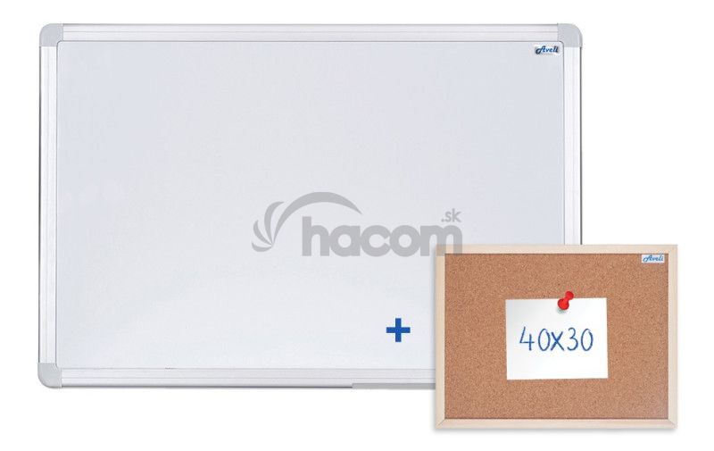 - Magnetická tabuľa AVELI 90x60 cm, hliníkový rám + korková nástenka 40x30 cm SET-00091