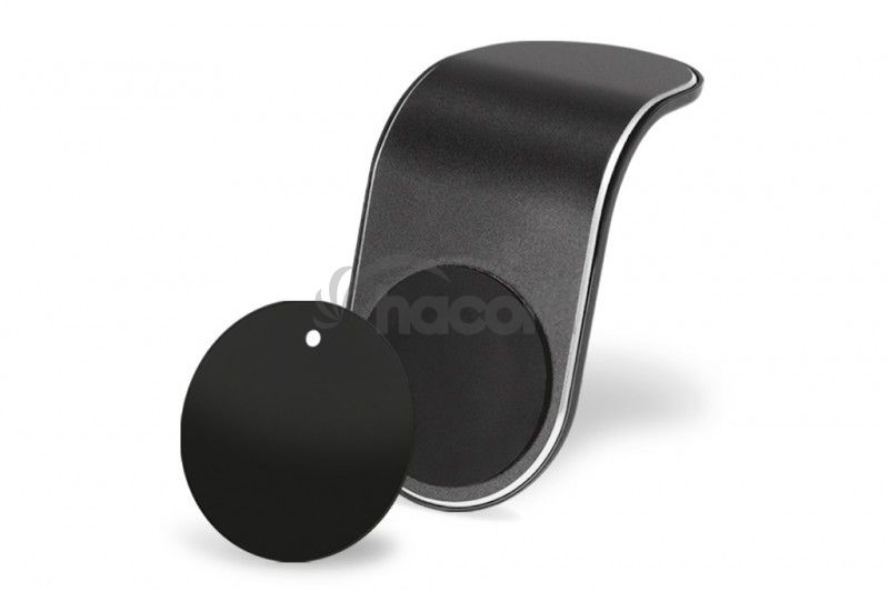 Kovový magnetický držiak pre mobilné telefóny do auta v dizajnovom prevedení. Vďaka integrovanému silnému magnetu možno zafixovať telefón prakticky akýchkoľvek rozmerov. Pomocou šetrného, ale pritom spoľahlivého mechanizmu, možno ľahko pripevniť k ventilačnej mriežke bez rizika jej poškodenia.V balení sú dve tenké magnetické doštičky, ktoré možno ľahko vložiť do puzdra telefónu alebo nalepiť na zadnú stranu telefónu pomocou kvalitnej obojstrannej lepiacej vrstvy.