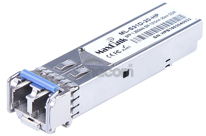 - MaxLink 1.25G SFP optický modul HP, SM, 1310nm, 20km, 2x LC konektor, DDM, HP kompatibilný ML-S31D-20-HP