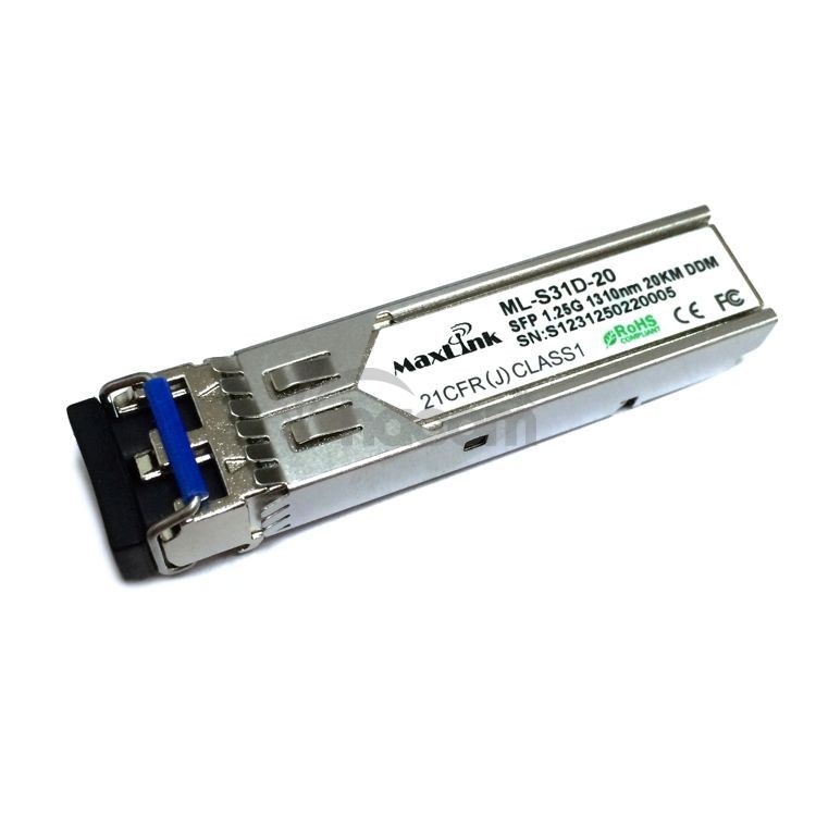 MaxLink 1.25G SFP optický modul, SM, 1310nm, 20km, 2x LC konektor, DDMML-S31D-20 je 1.25G SFP modul s 1310nm vlnovou dĺžkou, dvoma LC konektormi a maximálnou vzdialenosťou 20km po singlemode optickom vlákne. SFP modul podporuje monitoring, čiže DDM funkciu.