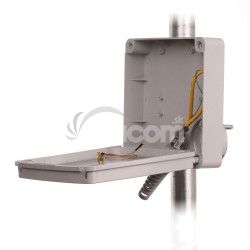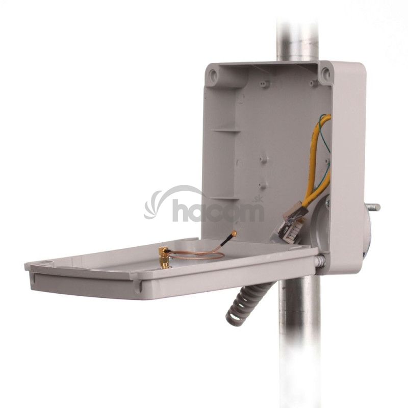 Outdoor box s panelovou anténou so ziskom 19dBi. Srdce antény tvorí PCB doska s hrúbkou 1mm v prevedení GoldFlash. Box je zhotovený z kvalitného UV stabilného ABS plastu. Únitre sú 4 kovové dištančné stĺpiky na priskrutkovanie UBNT WispStation5. V zadnom plechu je priechodka PG11 pre UTP kábel. Držiak antény je prevedený z pozinkovaného oceľového plechu s hrúbkou 2mm pre maximálnu pevnosť, zároveň umožňuje natáčanie antény v rozmedzí 45 ° vo vertikálnej rovine.Je možné použiť RB411, RB711, Wispstation.