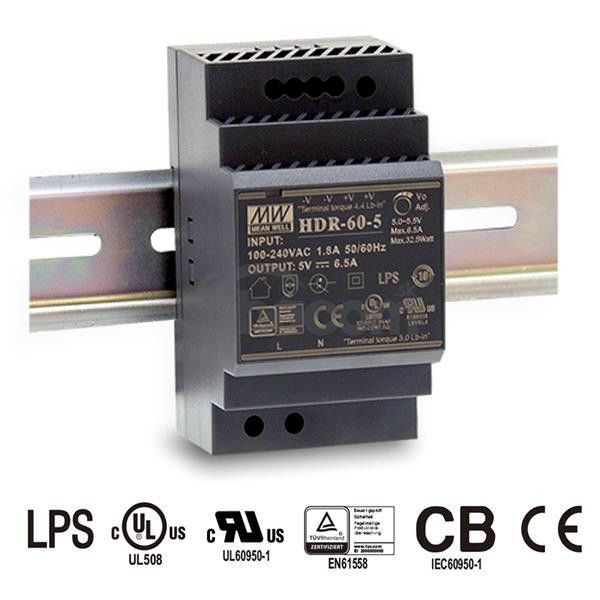 - MEANWELL - HDR-60-12 - Priemyselný napájací spínaný zdroj 12V 60W na DIN HDR-60-12