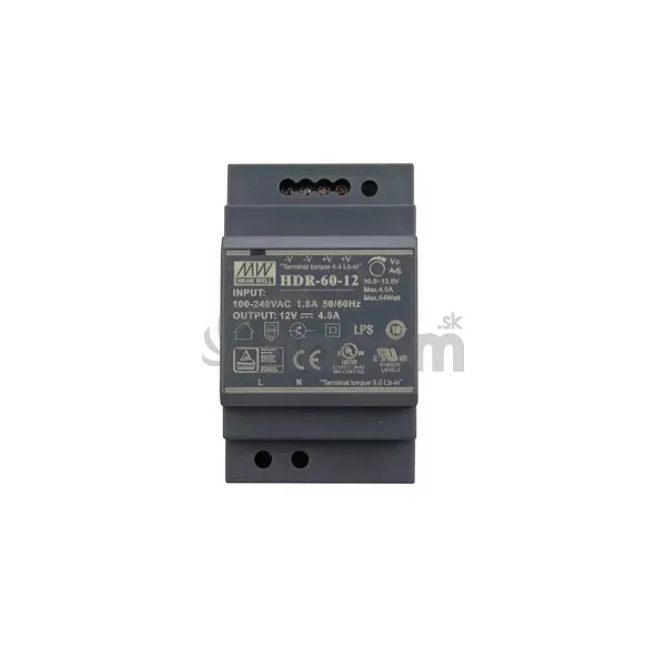 - MeanWell Napájací zdroj na DIN lištu 12V/4,5A 54W HDR-60-12