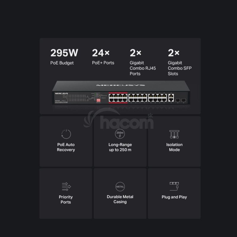 - Mercusys MS126CP 24xFE PoE+ 2xGb rack switch MS126CP