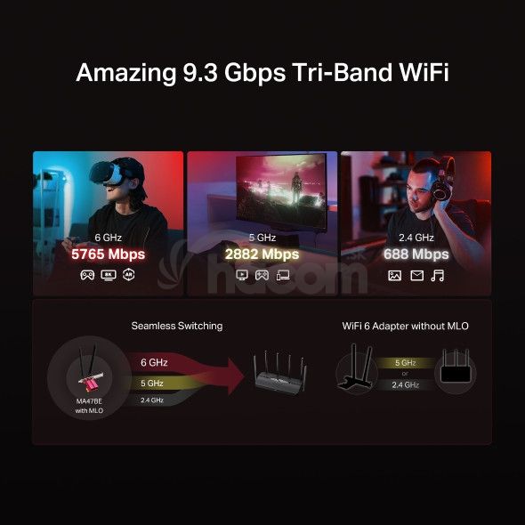 - Metcusys MA47BE BE9300 Tri-Band WiFi7 PCIe adaptér MA47BE
