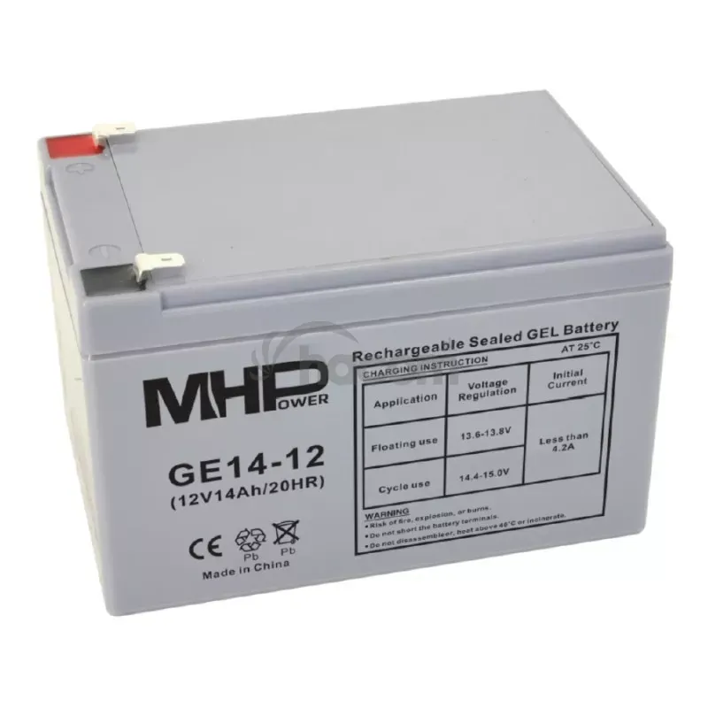 - MHPower GE14-12 Gélový akumulátor 12V/14Ah, Faston F2 - 6,3mm, Deep Cycle GE14-12
