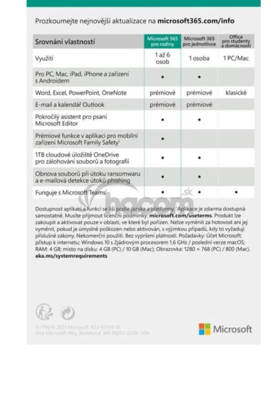 Microsoft 365 Family. Ročné predplatné pre až 6 osôb, kompatibilné s Windows aj macOS. Obsahuje prémiové aplikácie Office a rozšírené cloudové služby.ŠPECIFIKÁCIA