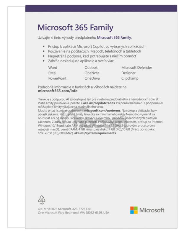 - Microsoft 365 Family FY25H2 Mac/Win, 1 Rok, SK EP2-32390