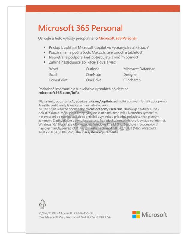- Microsoft 365 Personal FY25H2 Mac/Win, 1 rok, SK EP2-32462