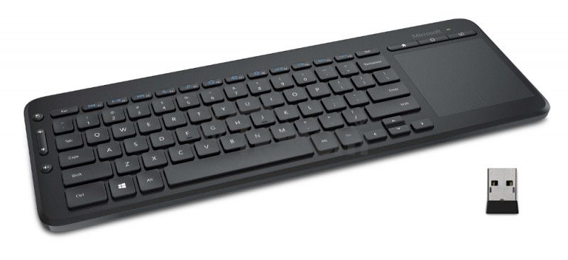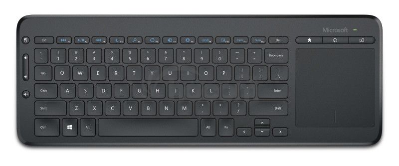 S All-in-One získate rýchly a jednoduchý prístup k obľúbeným fotografiám, filmom, hudbe a webovým stránkam z počítača na televíziu z pohodlia vášho gauča. Klávesnica disponuje integrovaným viacdotykovým ovládací kolík a plnohodnotne veľkými klávesmi, takže môžete bez problémov písať, preťahovať prsty, klikať, približovať či odďaľovať. Jednoducho pripojte klávesnicu k svojmu PC a získajte tak jednoduché a flexibilné bezdrôtové ovládanie.