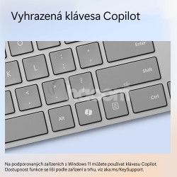 Vďaka klávesu Copilota pri klávesnici pre Surface máte vo Windows 11 výhody umelej inteligencie na dosah ruky. Táto elegantná klávesnica umožňuje klasické písanie so zabudovanou numerickou časťou a vyhradenými klávesmi pre rýchly prístup k funkciám výstrižky a skica, expresívny vstup, stlmenie hovoru a ďalším.