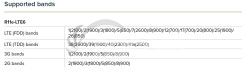 LTE (FDD) bands 1 (2100) / 2 (1900) / 3 (1800) / 5 (850) / 7 (2600) / 8 (900) / 12 (700) / 17 (700) / 20 (800) / 25 (1900) / 26 (850)