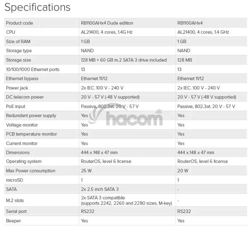 - Mikrotik RB1100AHx4 1GB RAM, 1400MHz, RouterOS L6 RB1100AHX4
