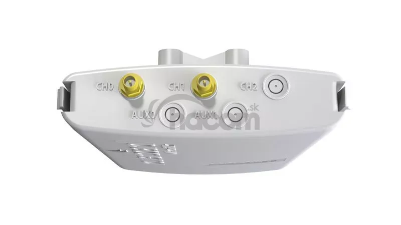 The RB912 in an outdoor enclosure, fit with two RPSMA connectors for antennas, and a cable hood for protection against moisture. Also available are three additional places for antenna connectors, in case you wish to use the RB912 miniPCIe slot for one more wireless interface to make a dual band device.