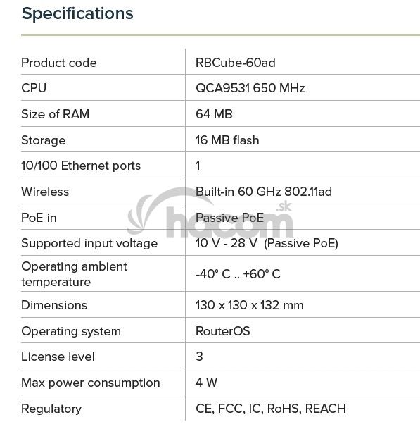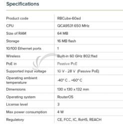 Systémové riešenie platforiem firmy MikroTik pre poskytovateľov bezdrôtového pripojenia k sieti Internet.Cube Lite60 je inovovaným ekvivalentom předcházehjící modelu RBSXTsq Lite 60, jedná sa o nízkonákladovú klientskou jednotku pre 60GHz pásmo.