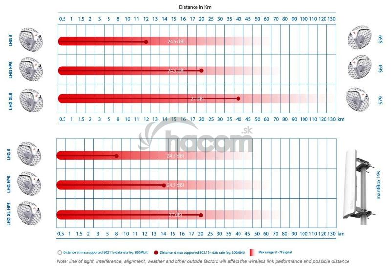 Duálny (2x2 MIMO) jednotka od mikrotik s reálnou prenosovou rýchlosťou 98 Mbps.