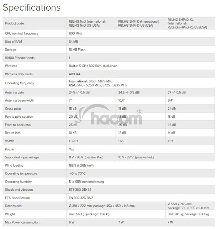 - MikroTik RBLHG-5HPnD 5GHz outdoor, 802.11an 24,5dBi jednotka LHG HP5 RBLHG-5HPnD