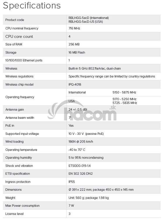 - MikroTik RBLHGG-5acD, 5GHz outdoor 802.11ac 24,5dBi RBLHGG-5acD