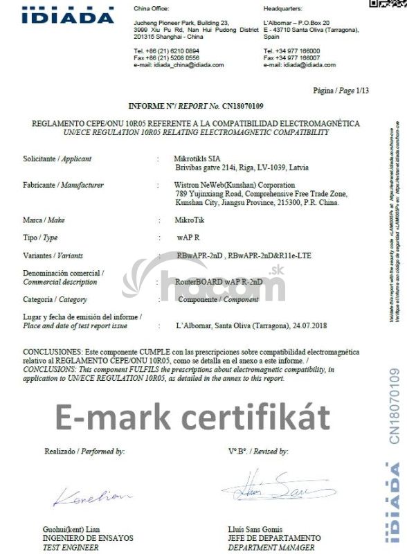 Súčasťou jednotky je RouterOS Mikrotik s licenciou L4.