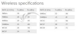 Citlivosť (dBm): - 100 (1 mbps) až - 72 (MCS9) dBm