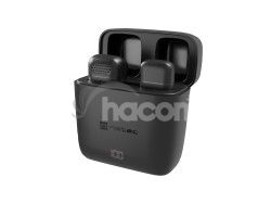 - Dlhá prevádzková doba vďaka 40mAh batérii v mikrofónoch a 200mAh batérii v nabíjacom púzdre