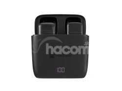 Zariadenie NATEC Hopper je kompatibilné so vstupom USB-C a proces nabíjania je intuitívny a rýchly. Batéria s kapacitou 40 mAh zaisťuje dlhšiu výdrž mikrofónu - až 4 hodiny od vybratia zariadenia z puzdra do jeho úplného vybitia. Samotné puzdro má kapacitu 200 mAh. Zaujímavé je, že telefón môžete nabíjať bez toho, aby ste prerušili nahrávanie, pretože slúchadlo má konektor, ktorý umožňuje pripojiť nabíjačku alebo powerbanku. Vďaka tomu môžete pokračovať v nahrávaní, aj keď sa váš smartfón vybije, a dlho využívať všetky funkcie NATEC Hopper.