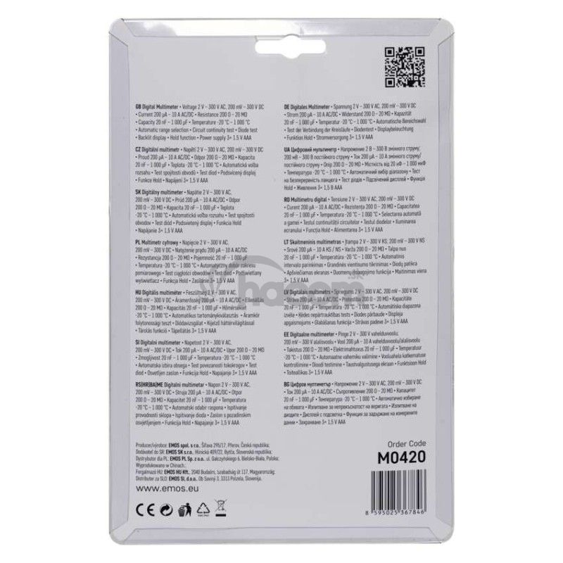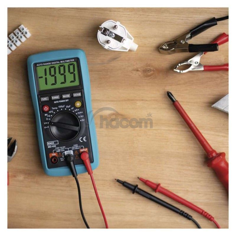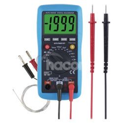 | súčasť dodávky | batéria, návod, meracie hroty, redukcia pre meranie tranzistorov, teplotná sonda typu K, zámok pre kryt batérie |