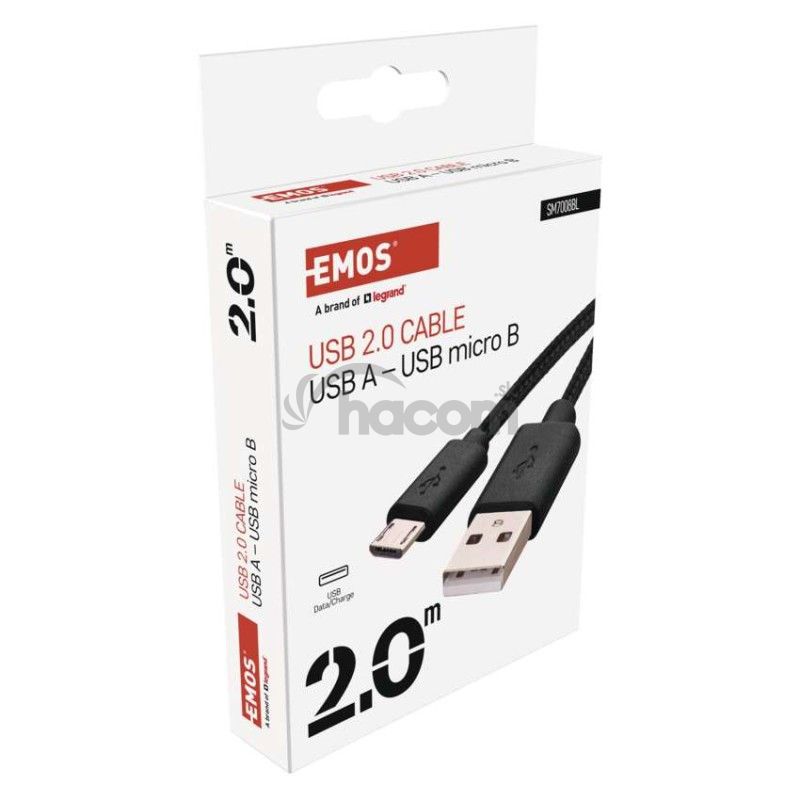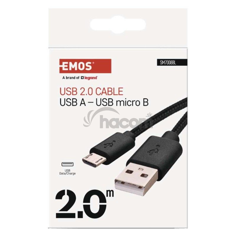 Nabíjací a dátový kábel USB-A 2.0 / micro USB-B 2.0, 2 m, čierny SM7008BL