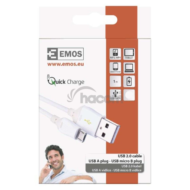 - Nabíjací a dátový kábel USB-A 2.0 / micro USB-B 2.0, Quick Charge, 1 m, biely SM7004W
