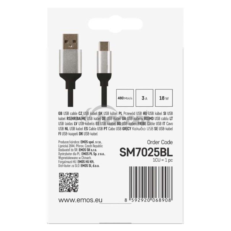 - Nabíjací a dátový kábel USB-A 2.0 / USB-C 2.0, 1 m, čierny SM7025BL