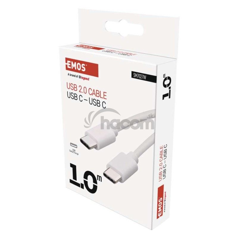 Nabíjací a dátový kábel USB-C 2.0 / USB-C 2.0, 1 m, biely SM7027W