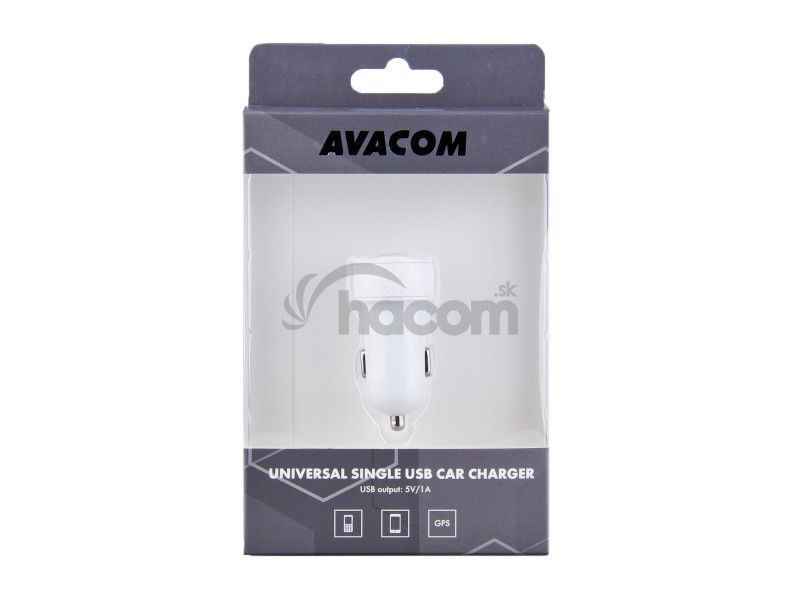 - Nabíjačka do auta AVACOM NaCl-1XWW-10A s výstupom USB 5V / 1A, biela farba NACL-1XWW-10A