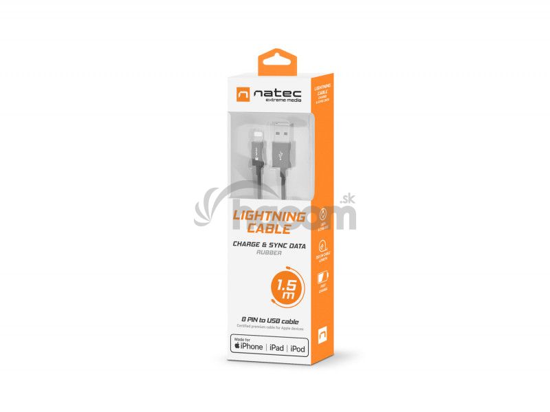- Natec certifikovaný PFI kábel Lightning pre Iphone 1,5m čierny NKA-1536