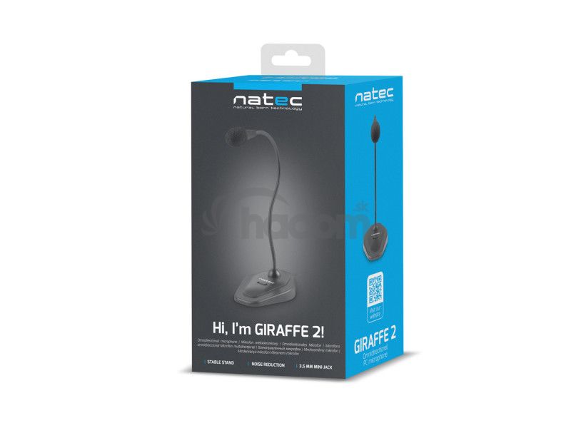 NATEC mikrofón GIRAFFE 2Všesmerový mikrofón Natec Giraffe 2 disponuje vysoko kvalitným prevodníkom zvuku, citlivosťou a moderným dizajnom. Perfektne sa hodí pre internetové konverzácie i pre nahrávanie vo vašom domácom štúdiu. Je tiež ideálny pre online hranie. Vďaka aktívnej redukcii šumu bude váš hlas znieť jasne a všetci účastníci vás počujú hlasno a jasne.