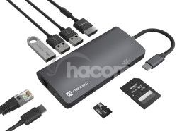 Natec multiport adaptér FOWLER 2 3X USB 3.0 HUB, HDMI 4K, USB-C, RJ45, SD, MICRO SD NMP-2162