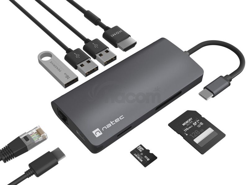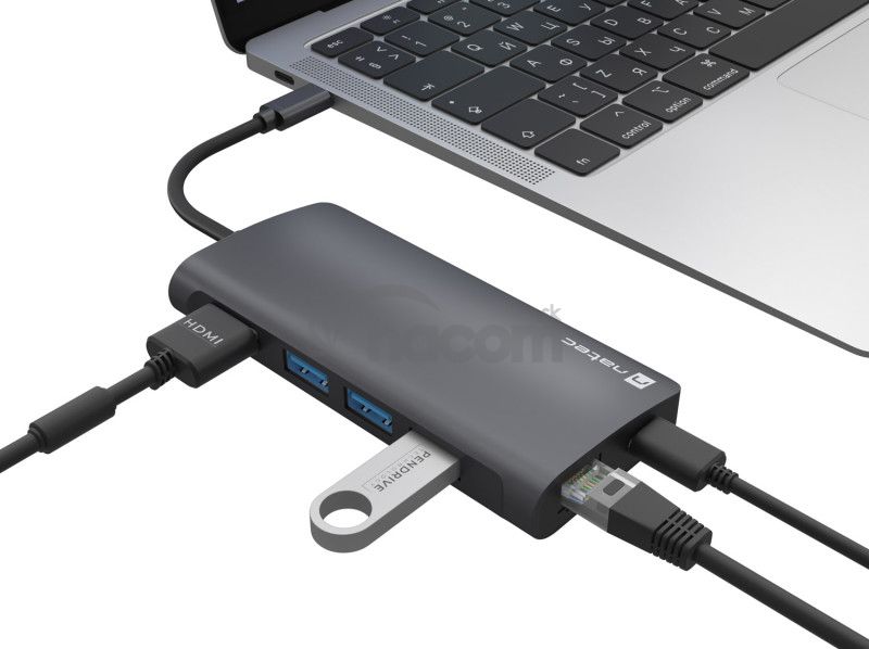 - Natec multiport adaptér FOWLER 2 3X USB 3.0 HUB, HDMI 4K, USB-C, RJ45, SD, MICRO SD NMP-2162